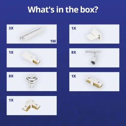 Komplettset 1-Phasen Rail L 1 x 2 Meter Weiß | incl. 8x Spot + GU10 2700K 3W Dimmbar + Abschlusskappe, Stromanschluss und L -Verbinder
