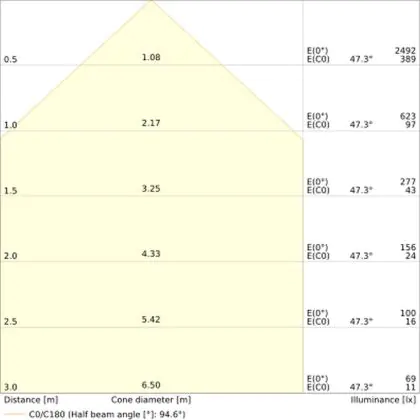 Der Abstrahlwinkel bezeichnet den Winkel, in dem das Licht aus der Lichtquelle ausgestrahlt wird. Er wird in Grad (D) angegeben. Je geringer die Gradzahl des Abstrahlwinkels ist, desto kleiner ist auch der Durchmesser des Lichtkegels, den die Lichtquelle produziert.