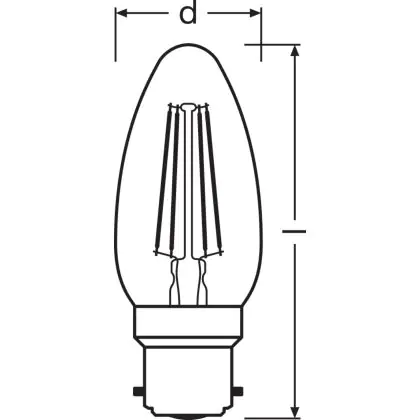 Osram Classic LED B22d Kerze Fadenlampe Klar 4W 470lm - 827 | Ersatz für 40W