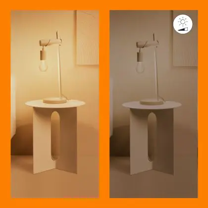 4. Dim to Warm: Durch Dimmen wird das Licht wärmer (gelber). Je stärker Sie dimmen, desto wärmer wird die Farbe.