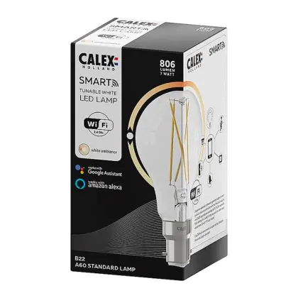 Are you looking for futuristic smart lighting with the classic (b22) bayonet fitting? Then the Calex Smart Standard LED Bulb B22 8,5W is the perfect match for you! This Calex Smart lamp is equipped with the well-known B22 Bayonet fitting and a low power of only 7 Watts. Moreover, this smart LED lighting is the economical replacement for conventional B22 lamps, which means you will save considerably in terms of energy costs! This smart bulb lasts no less than 15,000 hours and has a neat 2-year warranty.
