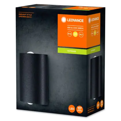 L’applique murale LED Ledvance Endura Style Alu Deco Applique Murale Foncé Gris Up & Down 6W 280lm - 830 est le luminaire idéal pour l’éclairage des endroits domestiques pouvant être humide et poussiéreux. Avec son indice de protection IP44, ce luminaire peut résister aux jets d’eau et à la poussière. On retrouve très souvent ce type d’éclairage dans les parkings, les cages d’escaliers, les halls d’immeubles… Ledvance propose une applique murale disposant de la technologie LED Intégré, vous permettant ainsi d’avoir un luminaire avec un faible impact sur l’environnement et capable de tenir jusqu’à heures.