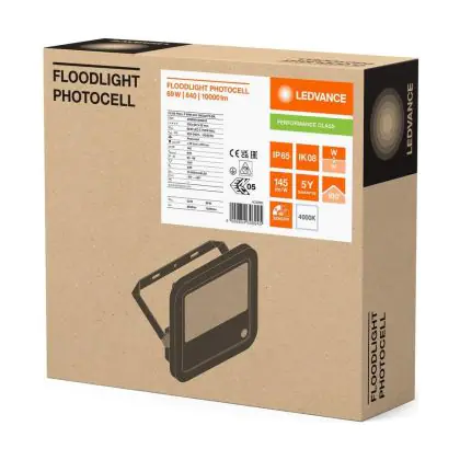 Le Ledvance Projecteur LED Aluminium Noir 69W 10000lm 100D - 840 | IP66 - Détecteur De Lumière - Symétrique permet une économie d’énergie importante tout en conservant une excellente qualité d’éclairage. Sa technologie LED Intégré lui permet également d’avoir une très longue durée de vie pouvant aller jusqu’à 100000 heures. Ce projecteur LED est étanche, avec son indice de protection IP66 lui permettant d’être hermétique à la poussière et à l’eau. Disponible dans la couleur 4000K - Blanc Froid et un flux lumineux de 10000 Lm, ce projecteur LED est la solution idéale pour le remplacement de vos anciens projecteurs conventionnels.
