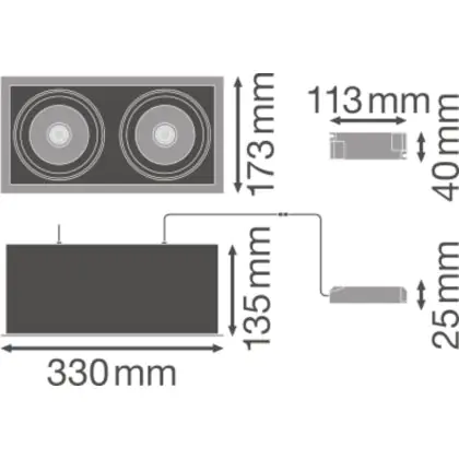 Description Ledvance Spot LED Carré Multi inclinable Noir-Blanc 2x30W 5400lm 38D - 830 Blanc Chaud | Diamètre 320x160mm