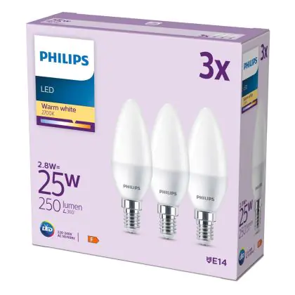 Lot 3x Philips Ampoule LED E14 Bougie Dépolie 3W 250lm - 827