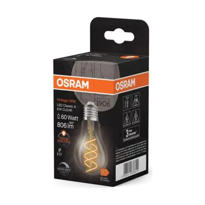 Cette ampoule Osram Vintage 1906 LED Classic E27 Poire Filament Claire 8W 806lm - 922 | Meilleur Rendu De Couleur - Dimmable - Remplacement 60W avec son efficacité lumineuse de lumen par watt vous permettra de profiter d’un éclairage de qualité. Avec sa durée de vie de 15000 heures, vous n’aurez pas à vous soucier de son remplacement avant quelques années.