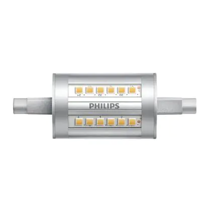 Philips Corepro LED Lineair R7s 78mm 7.5W 950lm - 830 Blanc Chaud | Équivalent 60W est une ampoule tubulaire linéaire à double extrémité. Ce type d’ampoule permet de délivrer une lumière homogène à 360° avec comme température de couleur 3000K - Blanc Chaud. Cette ampoule LED R7s de chez Philips est la solution idéale pour le remplacement de vos anciennes ampoules halogènes. Cette ampoule LED n’a pas besoin de transformateur, elle fonctionne avec 230V et peut se connecter directement sur le secteur électrique.