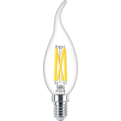 Cette ampoule Philips MASTER LED E14 Bent-tip Bougie Filament Claire 3.4W 470lm - 922-927 Dim To Warm | Meilleur Rendu De Couleur - Dimmable - Remplacement 40W avec son efficacité lumineuse de lumen par watt vous permettra de profiter d’un éclairage de qualité. Avec sa durée de vie de 25000 heures, vous n’aurez pas à vous soucier de son remplacement avant quelques années.