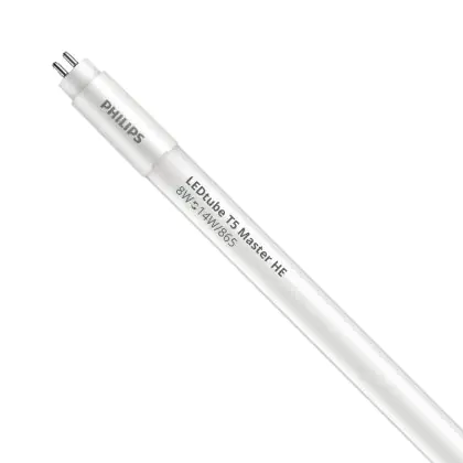 Ce tube LED Philips tube LED 55cm | 6500K 8W - Master HE est l’un des produits les plus éconergétiques en remplacement des tubes T5 classiques. Ce tube LED est produit par Philips, vous êtes donc assuré de sa qualité. Avec une puissance de seulement 8 W, ce tube LED Philips a la même intensité lumineuse qu’un tube classique qui consomme 14 W.